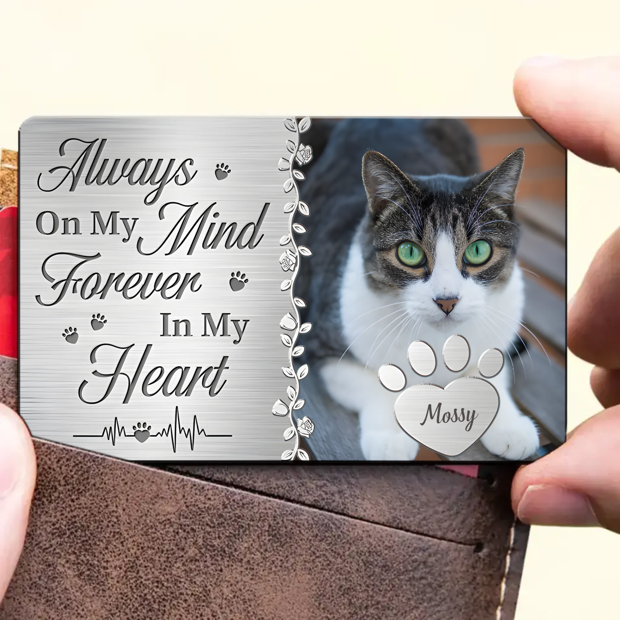 This personalized wallet card is a meaningful way to keep a memory, moment or person close to you at all times. It has perfect size for keeping in a wallet or purse, so your lovely message can be carried by your loved one wherever they go as a reminder of how much that important they means to you. This sentimental keepsake is perfect for any occasion.